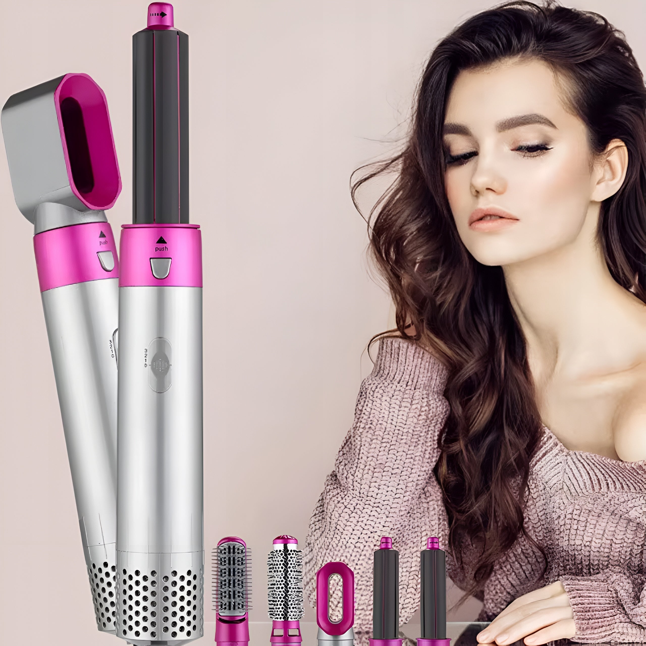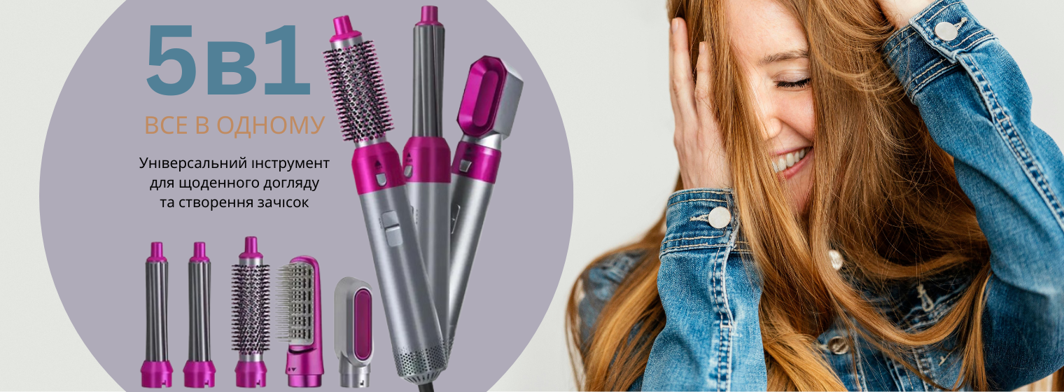 Фен з 5 різними насадками для сушіння та укладання Magic Hair Supersonic
